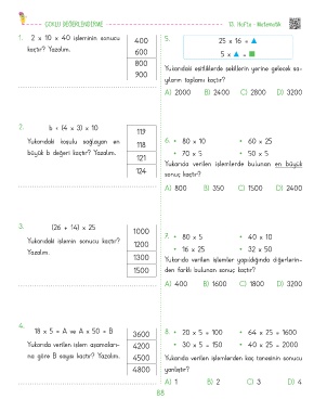 1. 2 x 10 x 40 işleminin sonucu 400 5. 25 x 16 =
