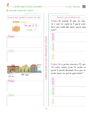 Çarpma işlemi gerektiren problem kur, çöz! Verilenleri yaz, problemleri çöz!