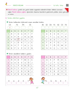 Verilen kodlamaları kullanarak oluşan sözcükleri bulalım.