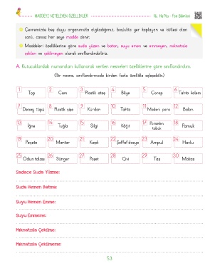 A. Kutucuklardaki numaraları kullanarak verilen nesneleri özelliklerine göre sınıflandıralım.