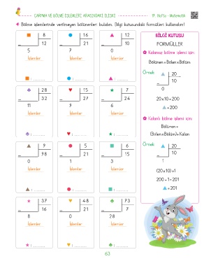 Bölme işlemlerinde verilmeyen bölünenleri bulalım. Bilgi kutusundaki formülleri kullanalım!