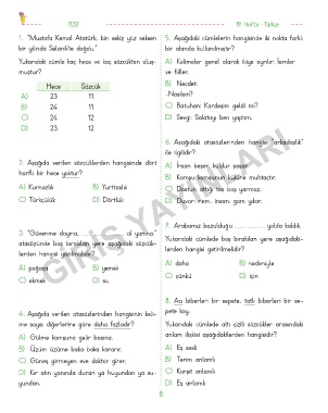 Page 8 - 4. SINIF HAFTA HAFTA ETKİNLİKLER 5. FASİKÜL - GİRİŞ YAYINLARI