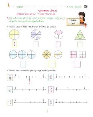 Verilen şekillerin ifade ettiği kesirleri örnekteki gibi yazalım.