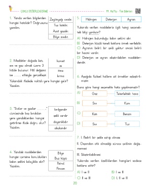 1. Yanda verilen bilgilerden Zeytinyağı sıvıdır. 5. Hidrojen Deterjan Ayran