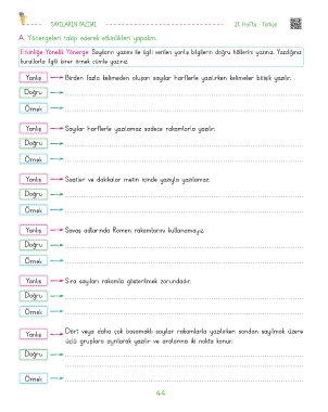 Etkinliğe Yönelik Yönerge: Sayıların yazımı ile ilgili verilen yanlış bilgilerin doğru hâllerini yazınız. Yazdığınız