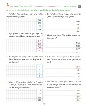 ZAMAN ÖLÇME PROBLEMLERİ 22. Hafta - Matematik