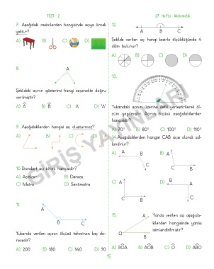 7. Aşağıdaki resimlerden hangisinde açıya örnek 12.