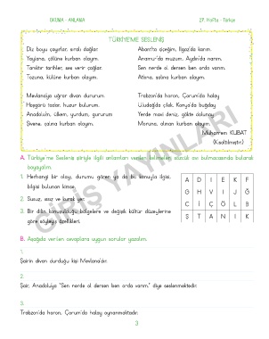 Page 3 - 4. SINIF HAFTA HAFTA ETKİNLİKLER 7. FASİKÜL - GİRİŞ YAYINLARI