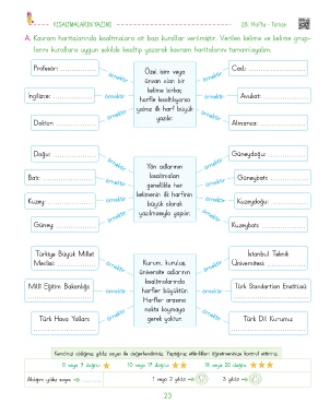 Kendinizi aldığınız yıldız sayısı ile değerlendiriniz. Yaptığınız etkinlikleri öğretmeninize kontrol ettiriniz.