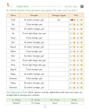 Kelime Yönergeler Yönergeyi Uygula Puan
