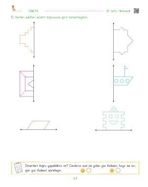 C. Verilen şekilleri simetri doğrusuna göre tamamlayalım.