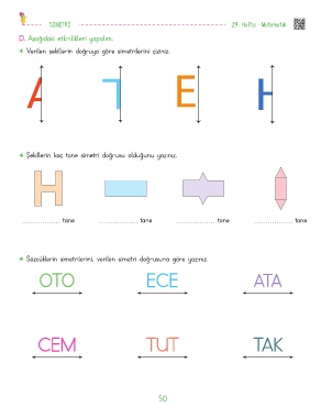 Sözcüklerin simetrilerini, verilen simetri doğrusuna göre yazınız.