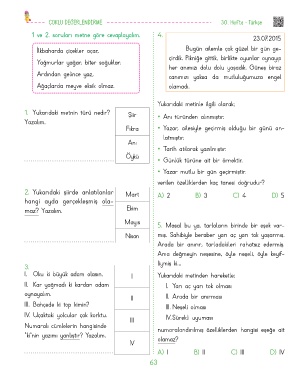 2. Yukarıdaki şiirde anlatılanlar Mart A) 2 B) 3 C) 4 D) 5