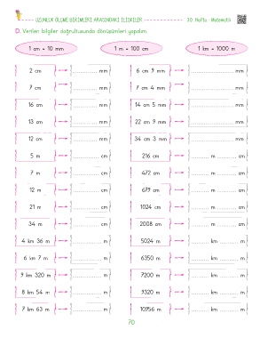 UZUNLUK ÖLÇME BİRİMLERİ ARASINDAKİ İLİŞKİLER 30. Hafta - Matematik