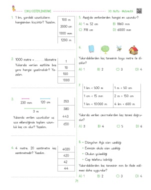 1. 1 km, yandaki uzunlukların 100 m 5. Aşağıda verilenlerden hangisi en uzundur?