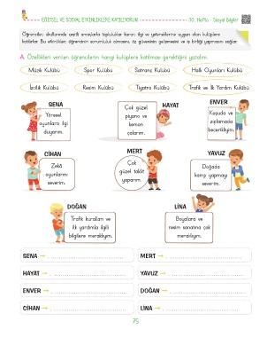A. Özellikleri verilen öğrencilerin hangi kulüplere katılması gerektiğini yazalım.