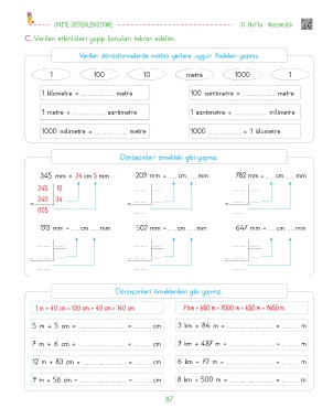 Verilen dönüştürmelerde noktalı yerlere uygun ifadeleri yazınız.