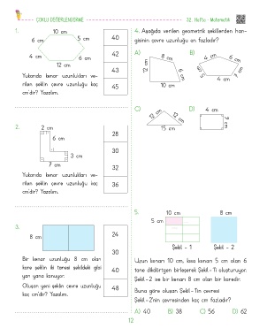 kaç cm’dir? Yazalım. Buna göre oluşan Şekil - 1’in çevresi