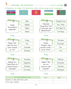 A. Bayrakların ait olduğu Türk devletlerinin adlarını altlarına yazıp soruları cevaplayalım.