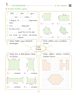 ÜNİTE DEĞERLENDİRME 36. Hafta - Matematik