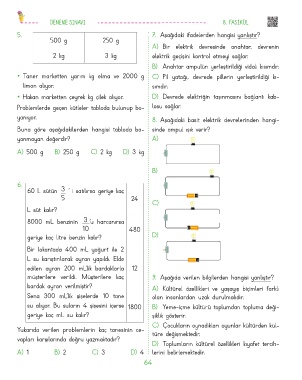 • Hakan marketten çeyrek kg çilek alıyor. D) Devrede elektriğin taşınmasını bağlantı kab-