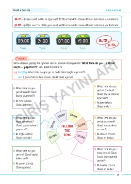 e.g. Dorothy: What time do you go to bed? (Saat kaçta uyursun?)