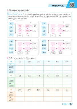 yapılan çıkarma işlemlerinin sonuçları aşağıda veriliyor. Buna göre yeşil kutucuklardaki sayıları pembe kutu-