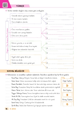 A. Kahramanlar ve savaştıkları cepheleri eşleştirelim. Boşluklara cephelerin baş harflerini yazalım.