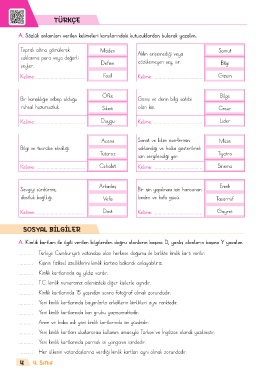 A. Sözlük anlamları verilen kelimeleri karşılarındaki kutucuklardan bularak yazalım.