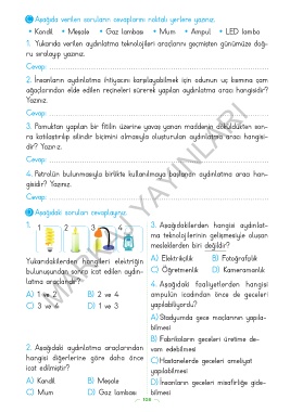 C) Mum D) Gaz lambası bilmesi
