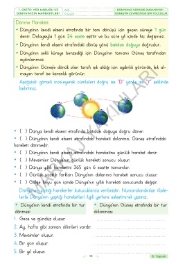 y ( ) Dünya’nın kendi ekseni etrafındaki hareketine günlük hareket denir.