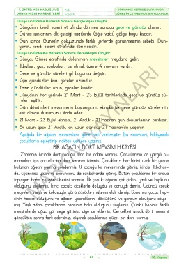 y Gün dönümleri mevsimlerin başlangıcını, ekinoks ise gece gündüz sürelerinin