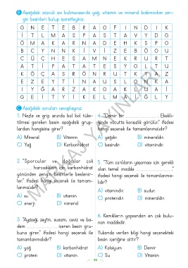 B Aşağıdaki sözcük avı bulmacasında yağ, vitamin ve mineral bakımından zen-