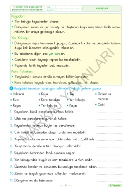 1. ÜNİTE: YER KABUĞU VE Adı : KAYAÇLAR