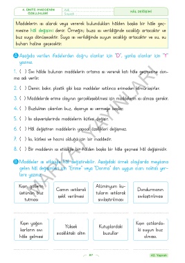 4. ÜNİTE: MADDENİN Adı : HÂL DEĞİŞİMİ