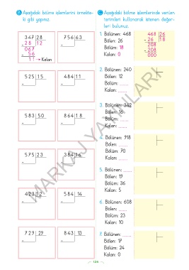 B Aşağıdaki bölme işlemlerini örnekte- C Aşağıdaki bölme işlemlerinde verilen
