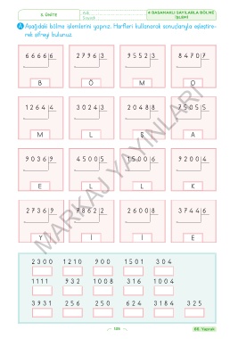 A Aşağıdaki bölme işlemlerini yapınız. Harfleri kullanarak sonuçlarıyla eşleştire-