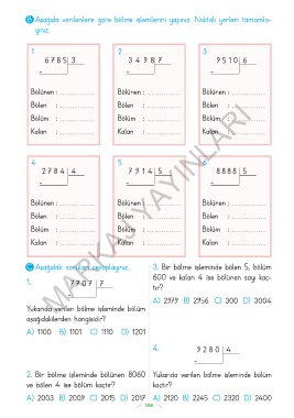 B Aşağıda verilenlere göre bölme işlemlerini yapınız. Noktalı yerleri tamamla-