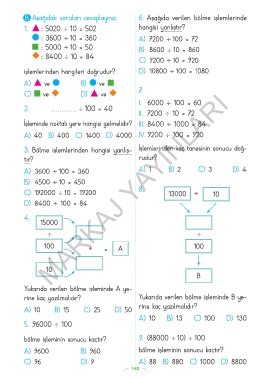 B Aşağıdaki soruları cevaplayınız. 6. Aşağıda verilen bölme işlemlerinde