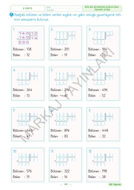 A Aşağıda bölünen ve böleni verilen sayıları en yakın onluğa yuvarlayarak tah-