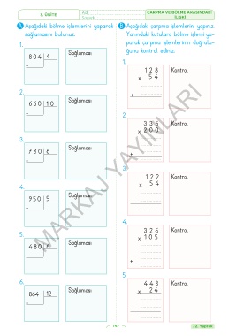 sağlamasını bulunuz. Yanındaki kutulara bölme işlemi ya-