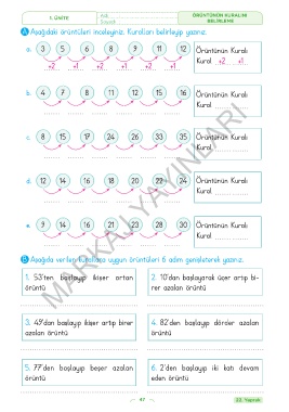 B Aşağıda verilen kurallara uygun örüntüleri 6 adım genişleterek yazınız.