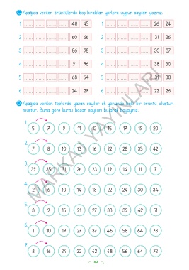 C Aşağıda verilen örüntülerde boş bırakılan yerlere uygun sayıları yazınız.