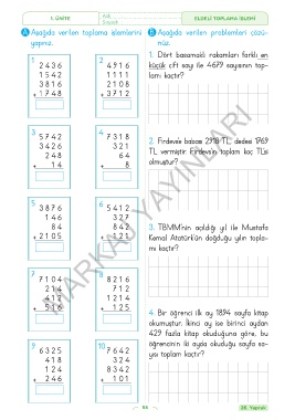 A Aşağıda verilen toplama işlemlerini B Aşağıda verilen problemleri çözü-
