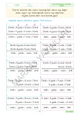 1. ÜNİTE Adı : ONLUK BOZARAK ÇIKARMA