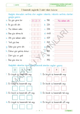 1. ÜNİTE Adı : 3 BASAMAKLI DOĞAL SAYILARI
