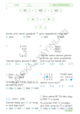 Yukarıdaki toplama işleminde K kaçtır? ğında hangi harf dışarıda kalır?