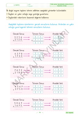 A Aşağıdaki toplama işlemlerinin gerçek sonuçlarını bulunuz. Ardından en yakın