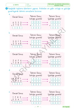 A Aşağıdaki toplama işlemlerini yapınız. Ardından en yakın onluğa ve yüzlüğe