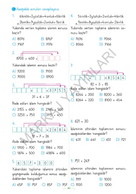 1. 6 binlik + 2 yüzlük + 4 onluk + 6 birlik 6. 5 binlik + 2 yüzlük + 2 onluk + 4 birlik